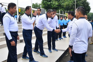 Olahraga bersama yang juga dihadiri oleh Kepala Staf Angkatan Laut (Kasal) Laksamana TNI Dr. Muhammad Ali, S.E., M.M., M.Tr.Opsla. dan Ketua Umum (Ketum) Jalasenastri, Ny. Fera Muhammad Ali, mengambil tema “Kowal Adaptif Teknologi Mendukung TNI Angkatan Laut Modern”.